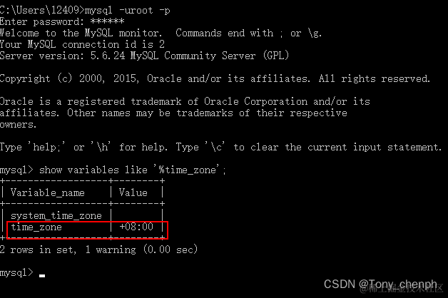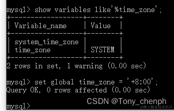 2、进入MySQL客户端修改time_zone