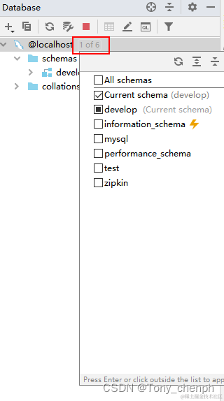 1、查看当前数据源下的所有数据库信息,选择需要在schemas中展示的数据库