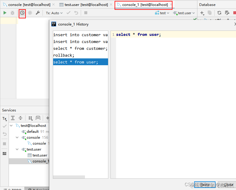 7、查看当前控制台的sql语句执行记录