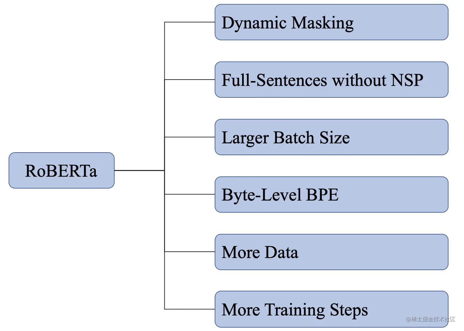 图1展示了RoBERTa主要探索的几个方面,并这些方面进行融合,最终训练得到的模型就是RoBERTa。