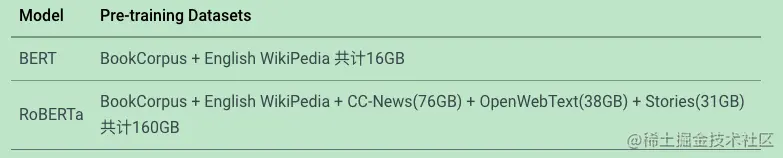 相比BERT, RoBERTa使用了更多的训练数据,详情如图4所示。
