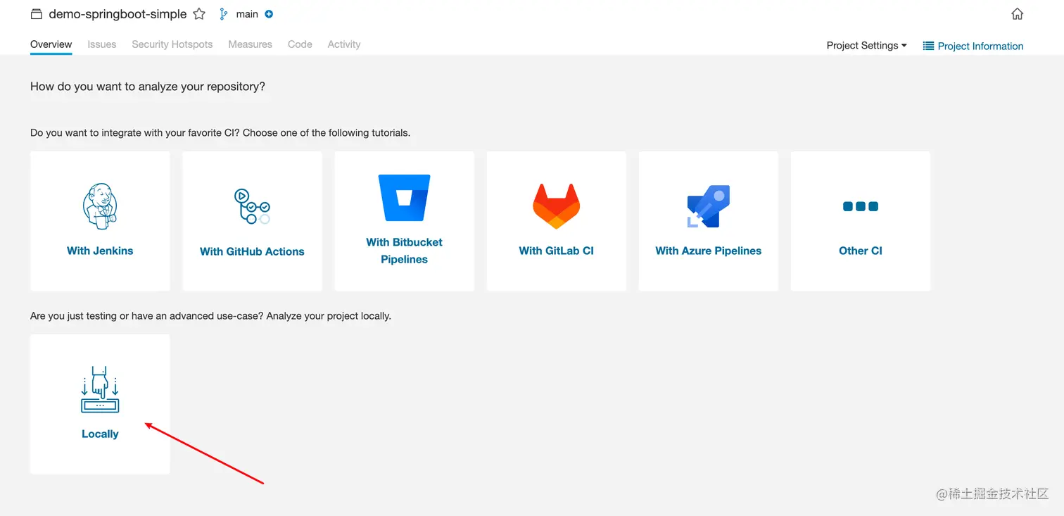 SonarQube提供了多种方式进行触发扫描,这里我们选择Locally