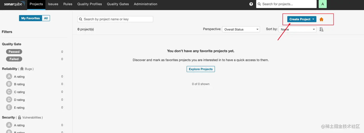 回到SonarQube,点击右上角的Create Project创建项目,一般来说,使用项目名就好