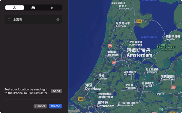 通过顶部第三个 tab 中的 Add location 选项,可以添加任意的地理位置,添加完成后可以选中某个位置来更改模拟器中的地理位置,对于有相关需求的开发者来说非常方便。