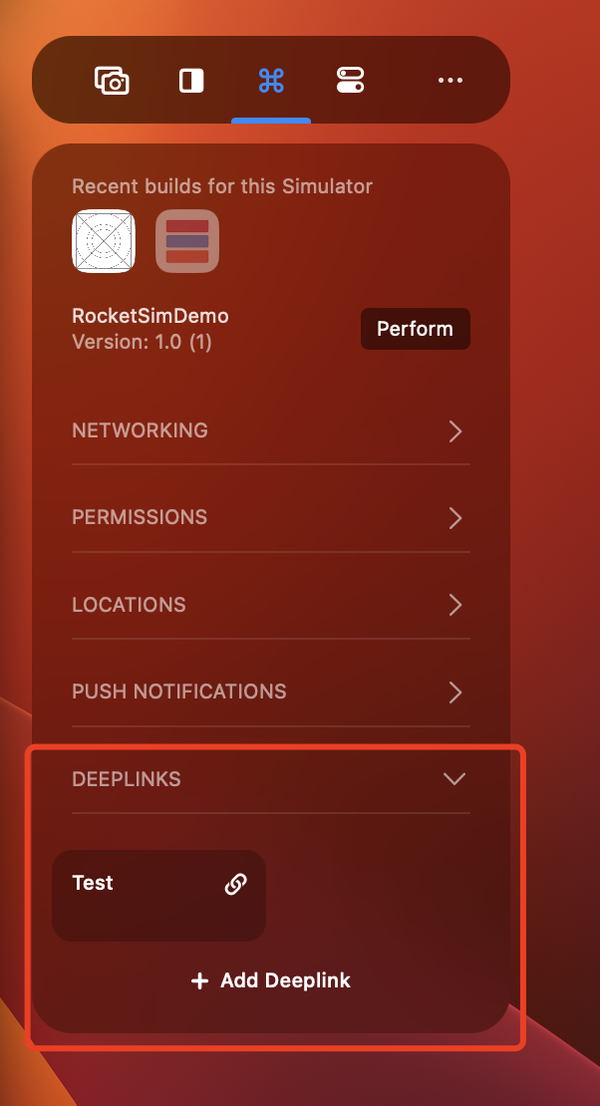 如果你的 App 支持深度链接,可以直接在 RocketSim 配置不同的 url,点击之后直接唤起你的 App,方便测试不同的 URL Scheme