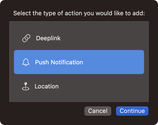使用上述相同的办法,添加一个 Push Notification,然后输入标题和推送的 JSON 文案,最后点击添加的这个 Push 选项即可测试推送。