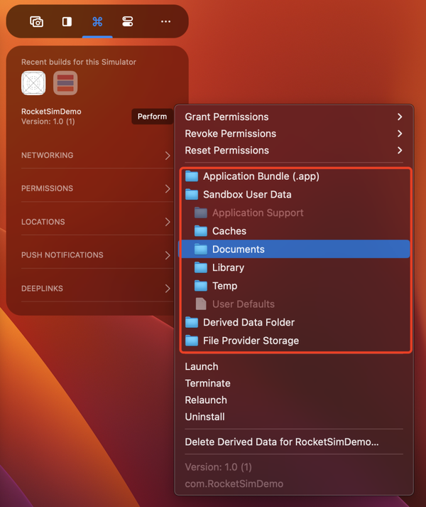 RocketSim 可以随时打开 Documents、Caches、Temp 和 Library 等文件夹,并对其中内容做出修改。