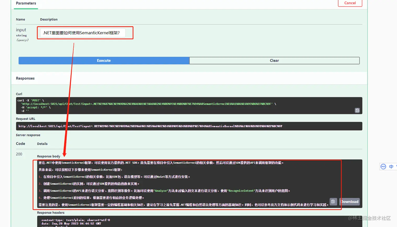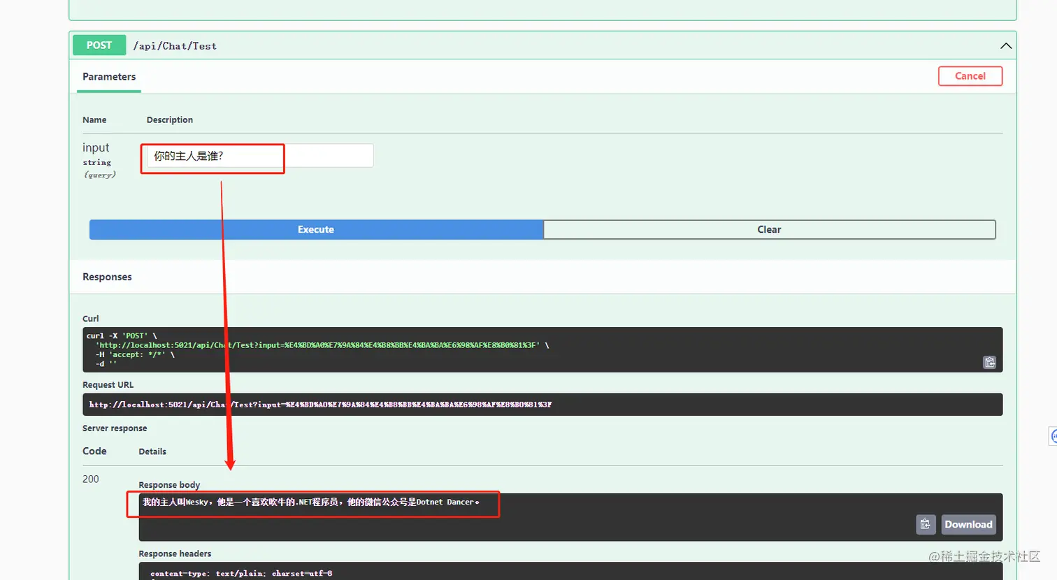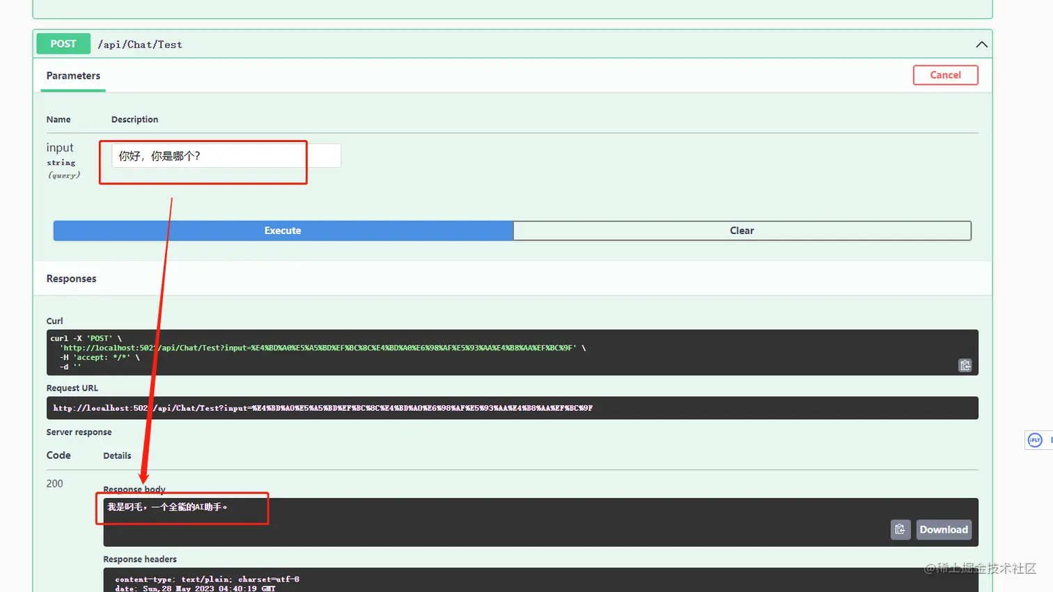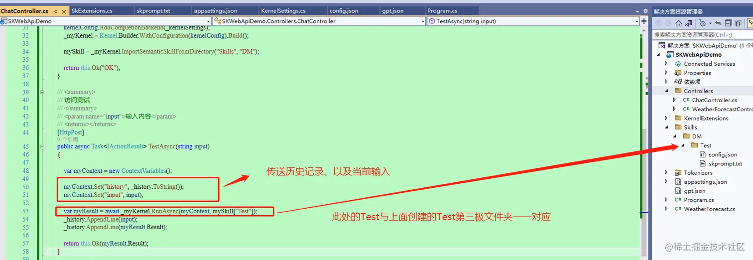再新建一个webapi接口,提供可输入文本内容的参数,并获取远程模型返回的内容,用来测试。