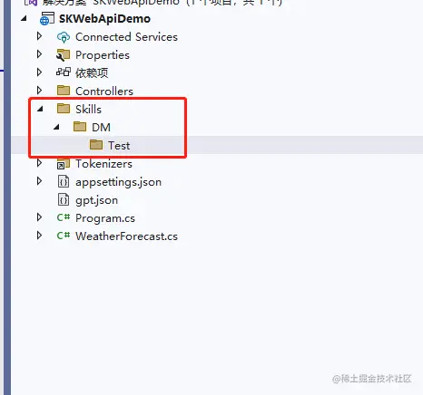 接着在主目录下,新建三级目录,包括Skills、二级目录自定义名称例如DM、以及三级目录名称例如Test。一级目录Skills是默认写法,当然也可以用其他命名,为了统一建议写成Skills。这里面要存放我们的prompt文件,用来给机器人做限定使用。