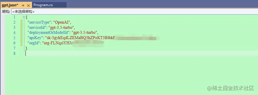 在配置文件里面,需要配置自己的服务类型。例如走的是azure还是openai,以及模型类型,例如gpt-3.5-turbo模型,还有自己的key,和组织id等信息。