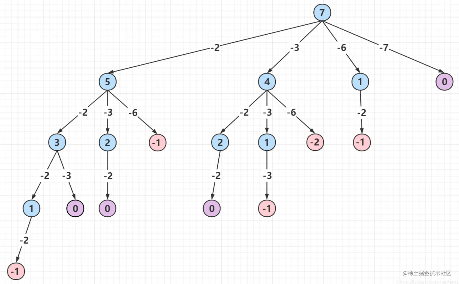 解释: 2 和 3 可以形成一组候选,2 + 2 + 3 = 7 。注意 2 可以使用多次。 7 也是一个候选, 7 = 7 。 仅有这两种组合。