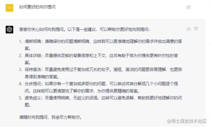 在我们了解了ChatGPT的特性之后,我们可以思考一下如果更好的进行提问,我们可以先直接问问chatgpt