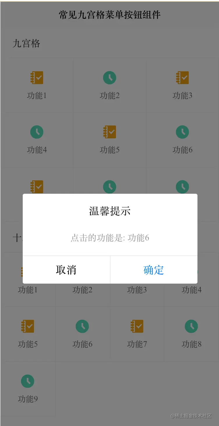 <ccGridButton gridTitle="九宫格" gridNum="3" :gridList="gridList" @click="gridClick"></ccGridButton>