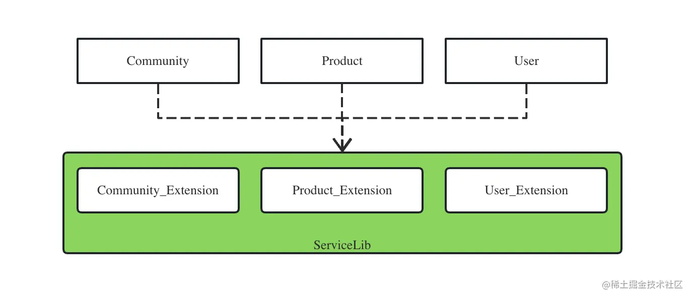 Protocol都放在每个Extension的库中,由对应的业务域负责模块维护。由于Service需要实现Protocol,这边的业务库会对Extension有依赖关系。