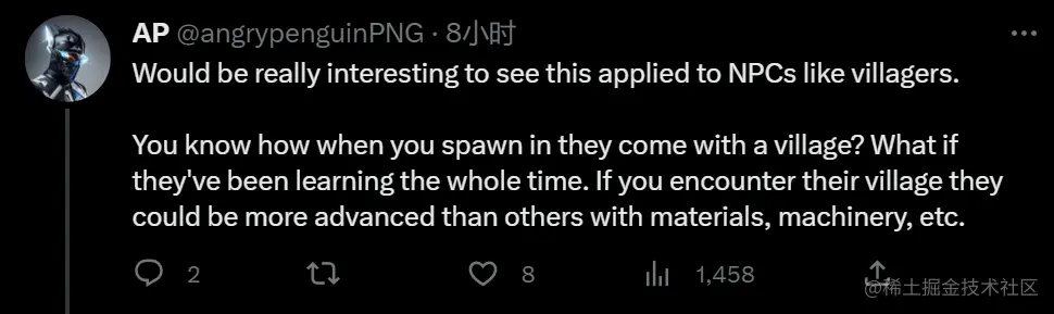 也有人在设想未来游戏的场景,由大模型带动 NPC,勃勃生机万物竞发的境界跃然眼前: