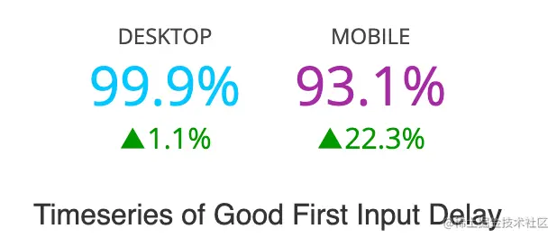 同时,从 chrome-ux-report,我们可以看到,93% 的网站在移动设备上具有不错的 FID,