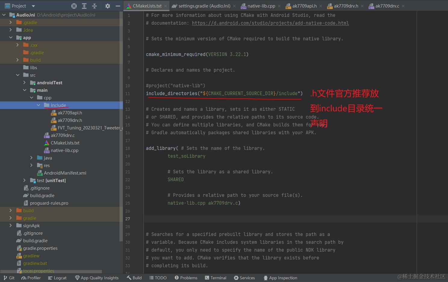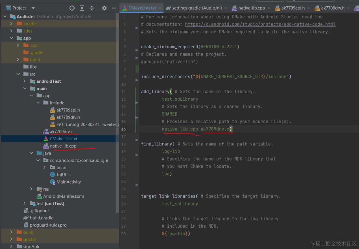 注:默认你以及安装好NDK开发的所有环境,包括cmake插件,没配置的点这。