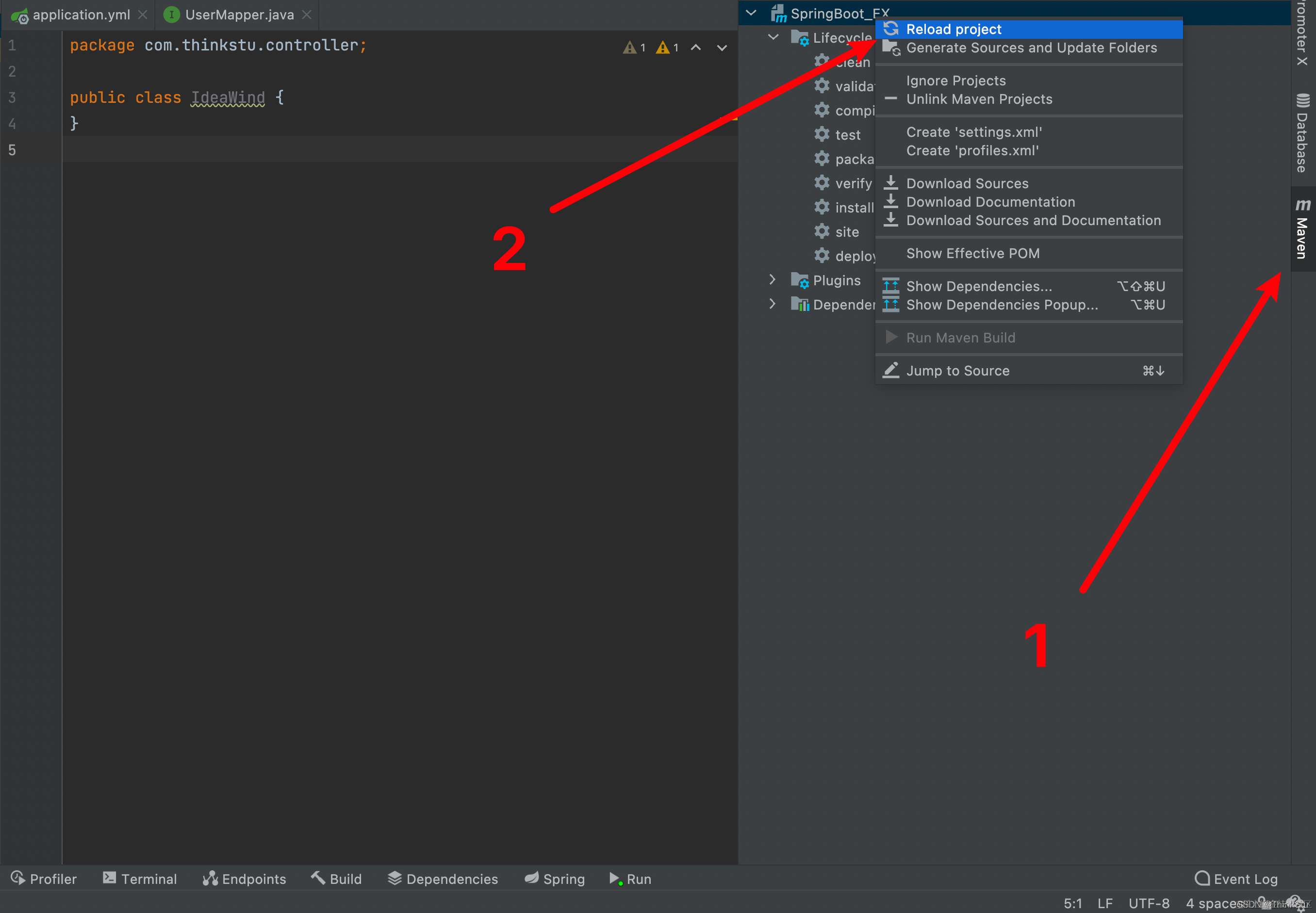 IDEA日常故障解决方法 ThinkStu 2023-05-29 104 阅读1分钟 在日常使用IDEA中,经常会遇到IDEA不明所以突然抽风的情况,本文针对此总结出了三种方法。 1. 刷新整个Maven工程 可解决级别:一般性故障 2. 清除IDEA缓存,并重启IDEA 可解决级别:灾难性故障 3. 电脑关机重启 可解决级别:所有故障