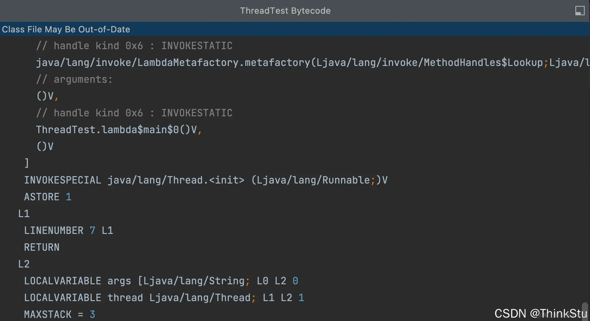 IDEA查看Java字节码文件 ThinkStu 2023-05-29 418 阅读1分钟 在Java项目开发的过程中,我们有时候需要获得Java的字节码文件( .class文件 ),以便加深对问题的理解与排查。 步骤: 1. 单击IDEA右侧的Maven工程管理,选择生命周期控制(lifecycle),打包(package)。 2. 在生成的 target目录中找到我们需要的类,把鼠标的光标定位在类里面,然后选择顶部菜单栏 View,show Bytecode,获得字节码文件。 最终成果