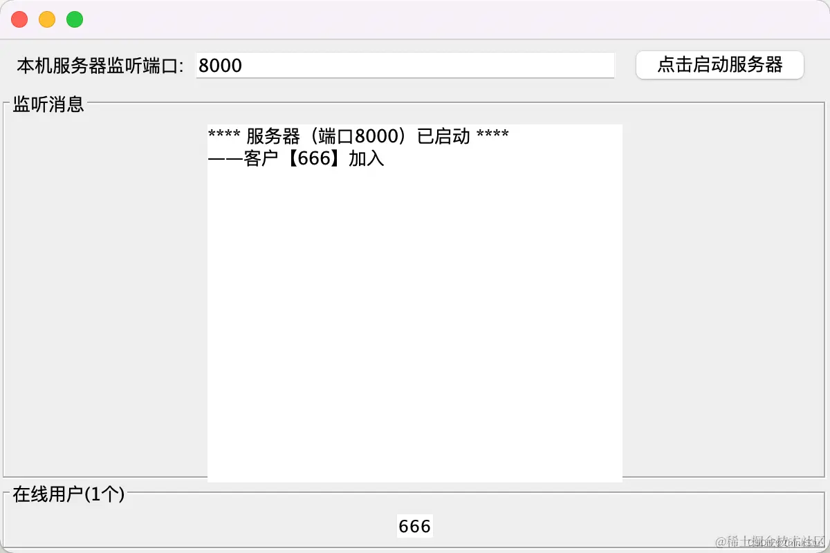butStart.addActionListener(new startServerHandler()); // 注册 "启动服务器" 按钮点击事件