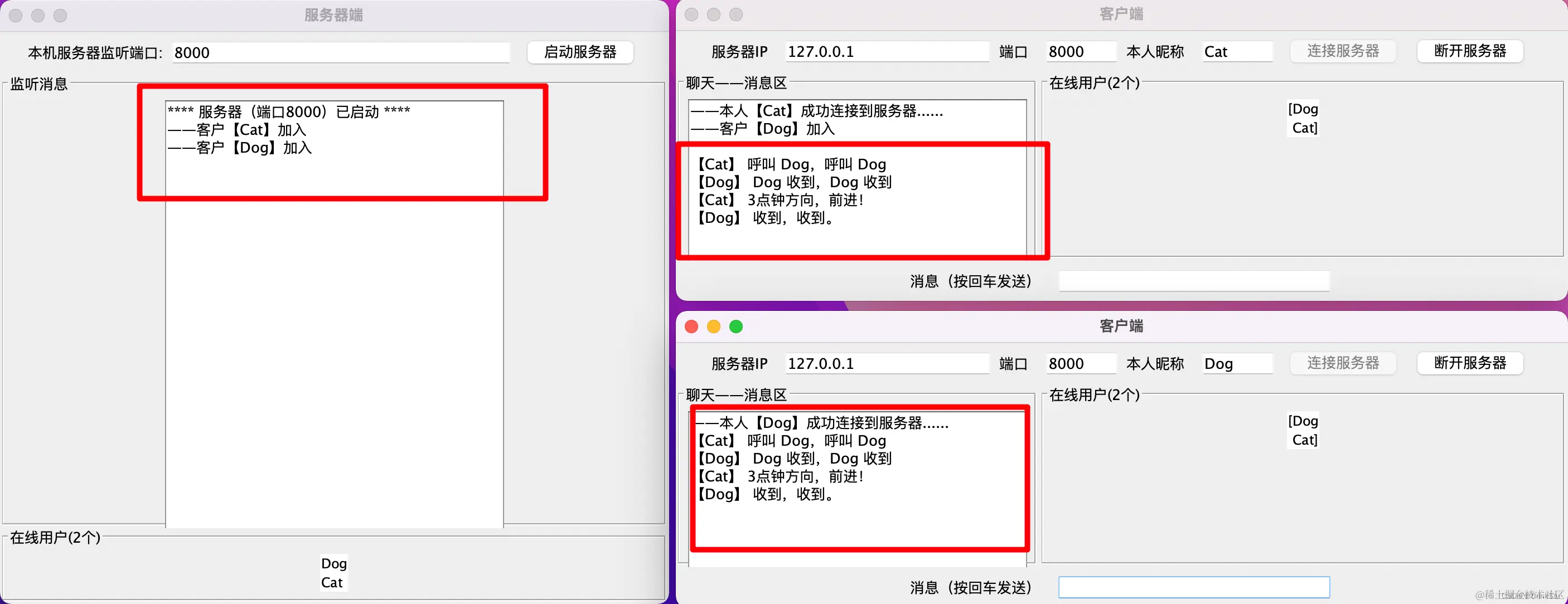 将上述的 Client 类复制一份,改名为 Client2 ,然后同时启动 Client 和 Client2 程序。