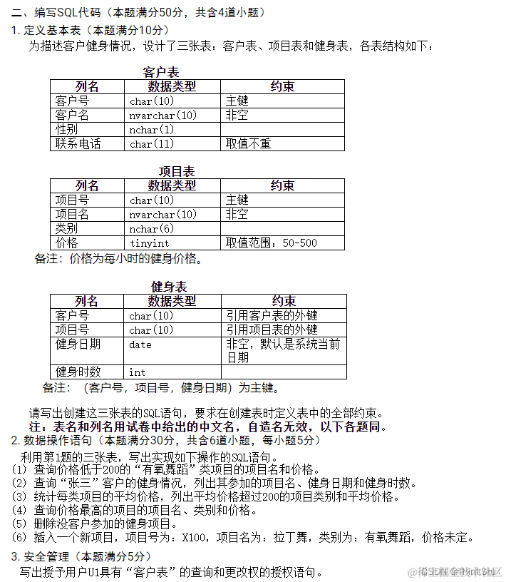【往届期末试卷】2018届数据库原理与应用