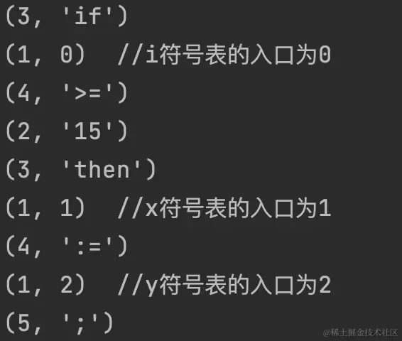 (3,‘if’)// i的符号表入口为0