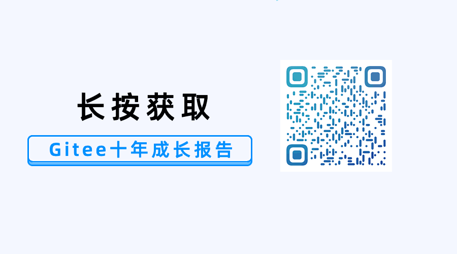 如果你还想了解十年来 Gitee 开源项目发展状况、Gitee 各类开源组织的影响力等详细内容,请扫描下方二维码,下载 《Gitee 十年成长报告》 ,见证 Gitee 10 年的成长与蜕变。