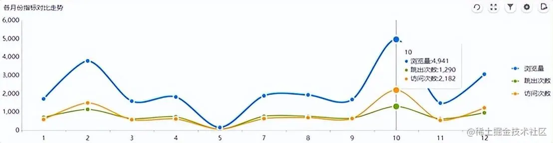 举个例子,我们仔细分析上图中的平台流量指标,可以发现10月份是2017全年的流量高峰期,应该跟企业在国庆黄金假期所做的促销引流活动有关。浏览量、跳失次数、访问次数分别为4941、1290、2182,对比计算可得到跳失率为59.12%,明显低于其他时间段的跳失率,说明10月份的活动效果还不错,其经验对以后的营销推广可以起到参考作用。