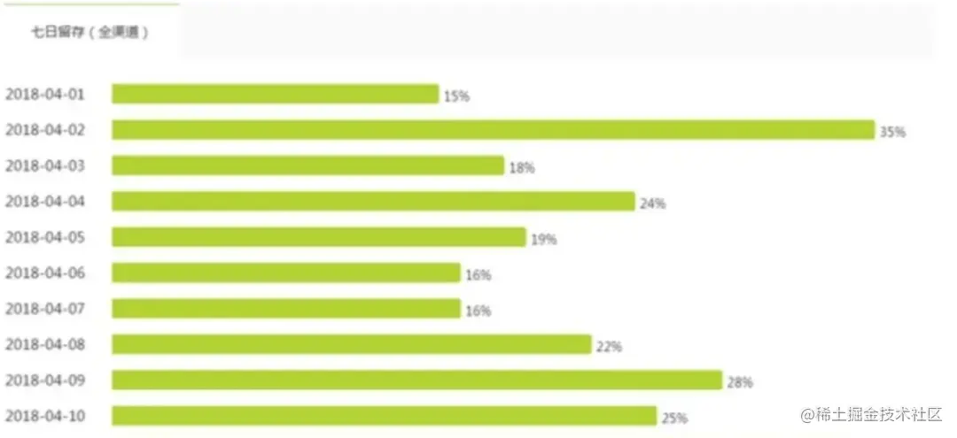 不同时长的留存率分析可以折射出不同的问题。一般而言,分析次日留存率有利于抓住产品的品质变动和渠道优势;7日留存率可以体现出一个较为完整的周期后的用户去留情况;30日留存率可以反应产品或渠道迭代后的稳定性,协助判断演进方向的合理性。