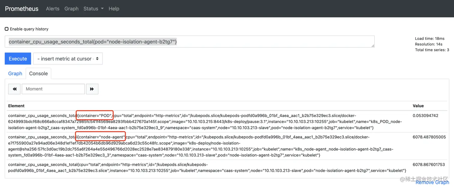 - rate(container_cpu_usage_seconds_total{pod="node-isolation-agent-b2tg7"}[3m])代表,每3m时间段,其cpu使用量的变化率的平均值。