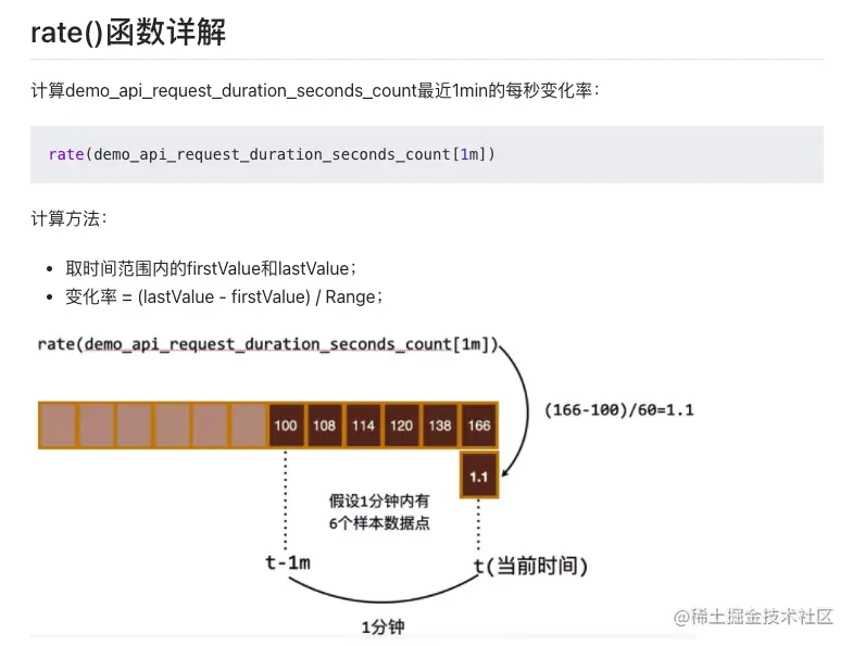 rate函数是用于计算时间序列数据的速率(rate)的函数之一。