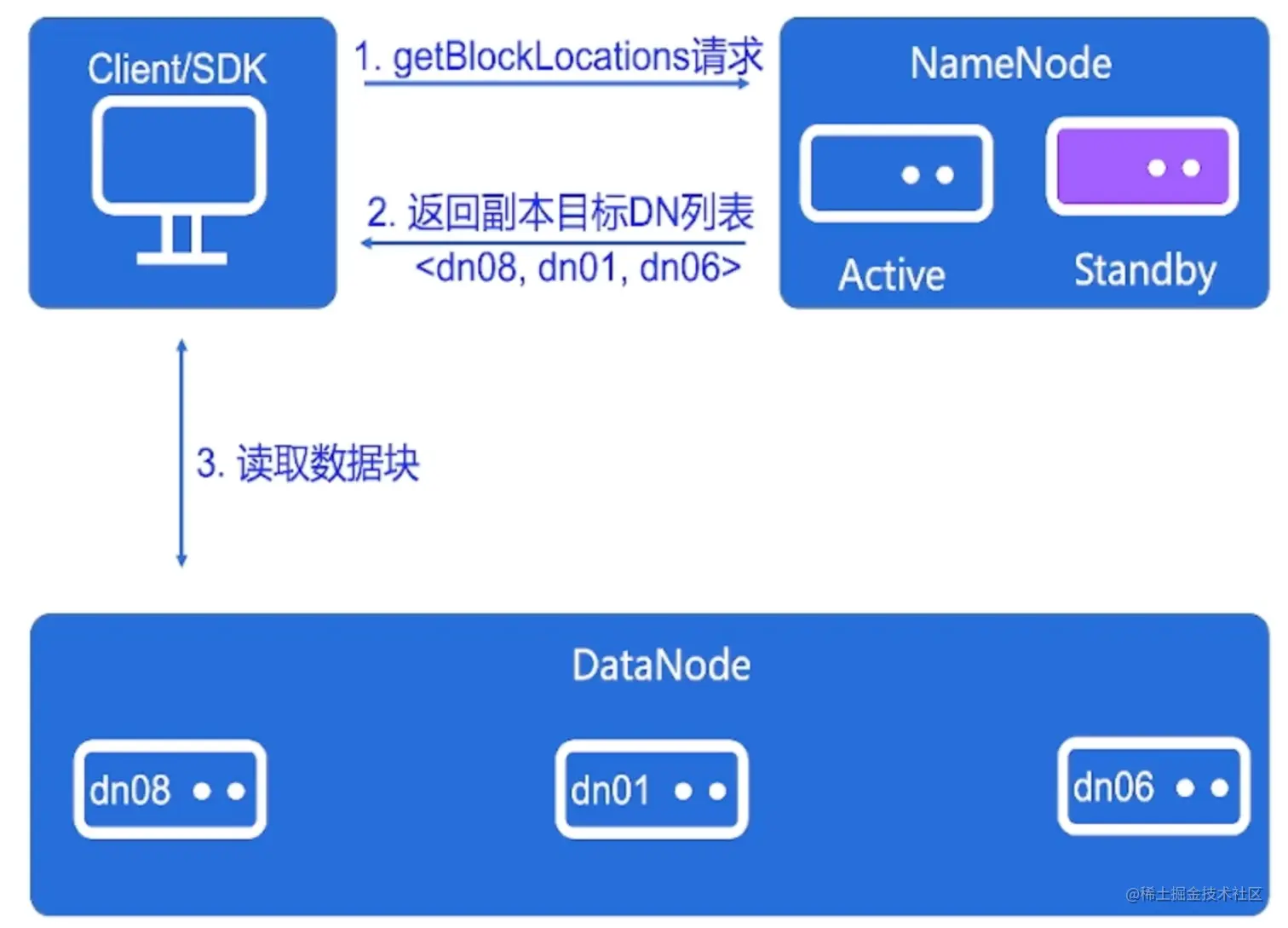 - NameNode根据DataNode汇报的信息动态维护位置信息
