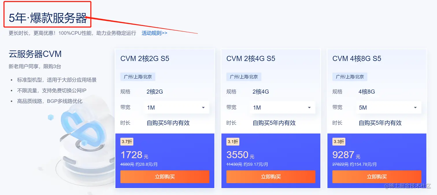 首先阿里目前没有长租的活动,这样对我们长期用云,只能首年便宜,续费几乎几倍翻价的情况实在接受不了,腾讯当下却有5年的长时间活动,省心省力