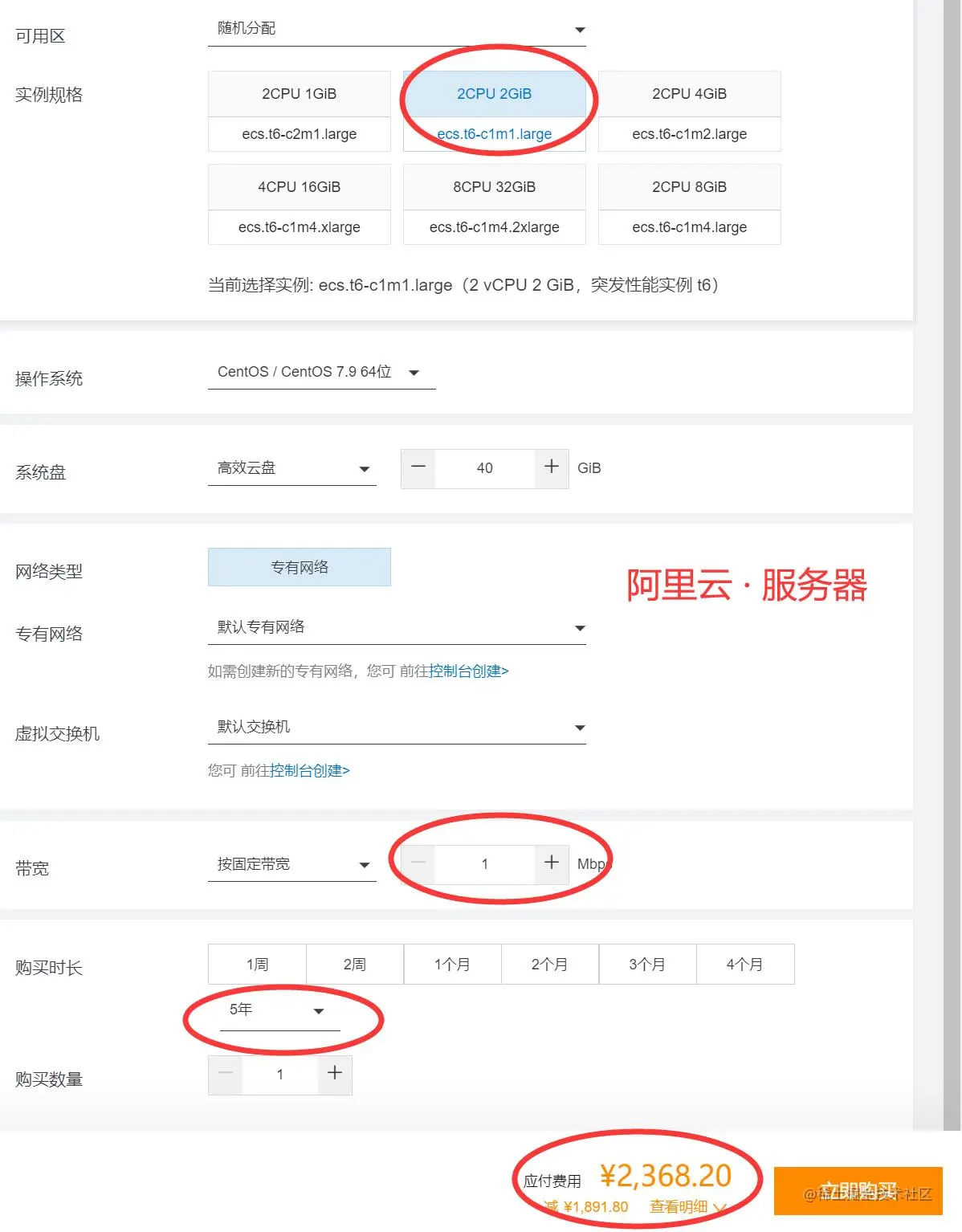 阿里云 2核2G1兆 的配置,5年就要2368元,平均1年是473.6元