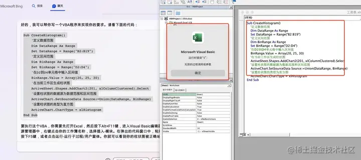 New Bing给了我们代码和执行方式,来一起试试(windows是 alt + F11,mac是fn + option + f11)