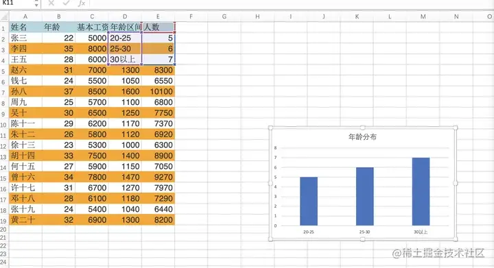 我们任务是先做个柱状图,年龄划分为20~25,2530, 3035三个区间。设置我们的Prompt