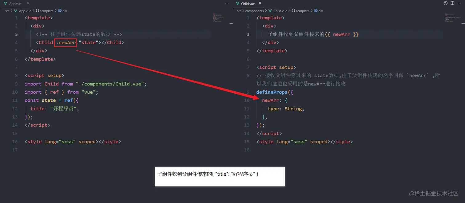 // 接收父组件穿过来的 state数据,由于父组件传递的名字叫做 `newArr` ,所以我们这边也采用的是newArr进行接收
