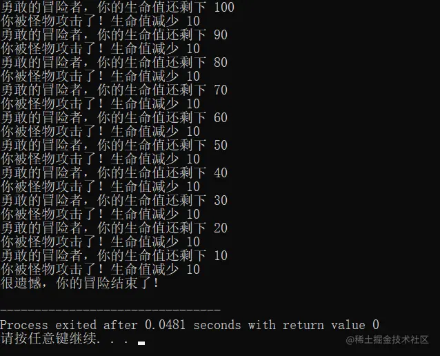 printf("勇敢的冒险者,你的生命值还剩下 %d\n", health);