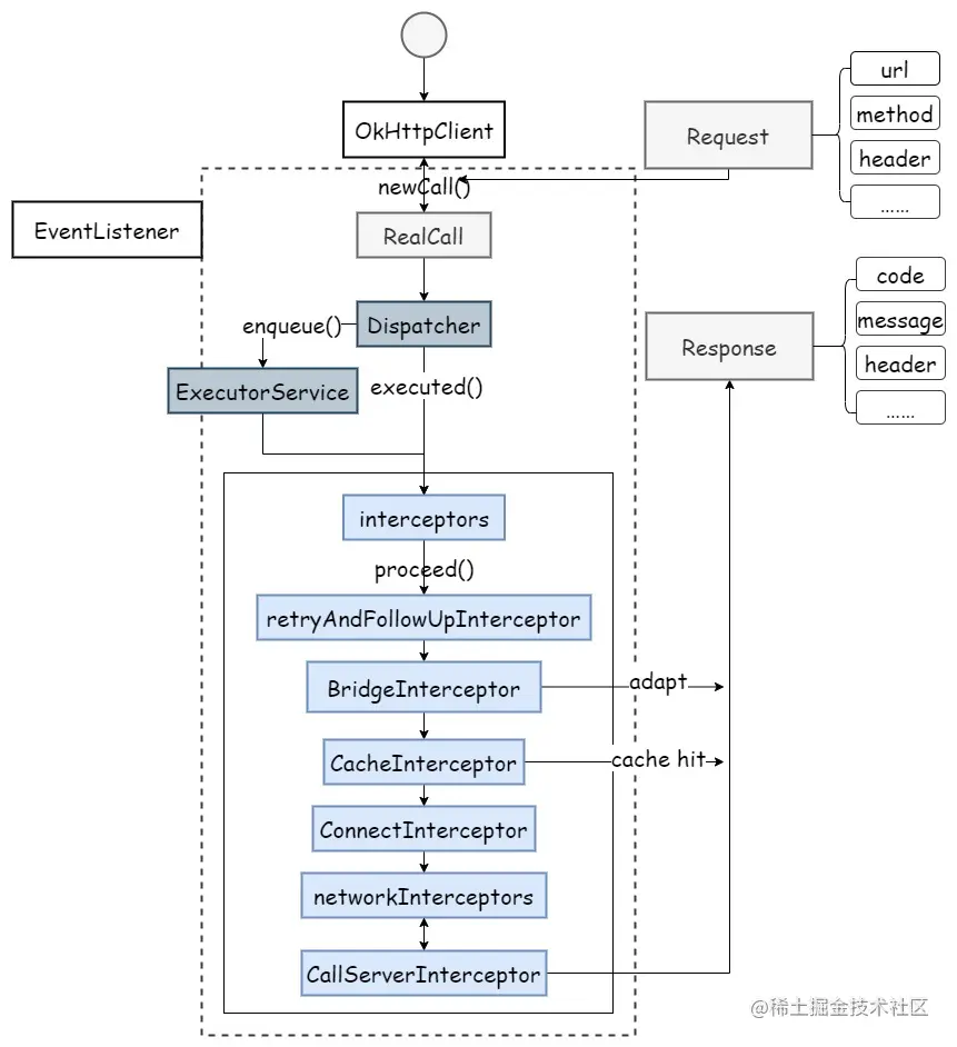 一个 OkHttp 请求的核心执行过程如以下流程图所示: