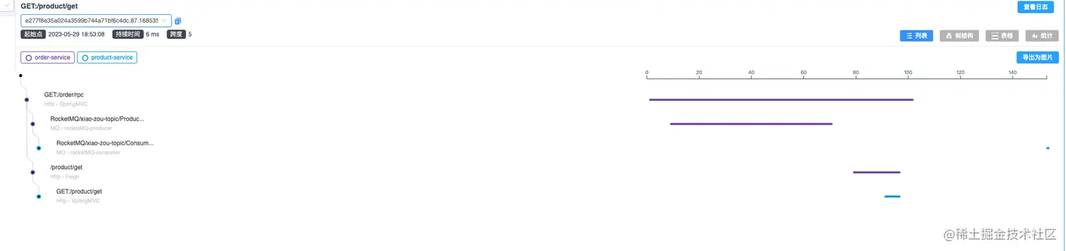 可以看到一个请求,所有的tid是一致的都是e277f8e35a024a3599b744a71bf6c4dc.87.16853575884480001