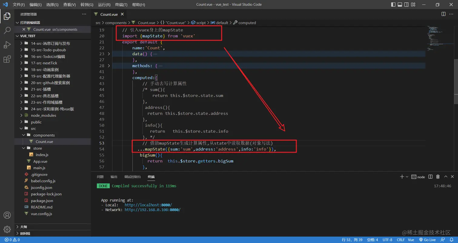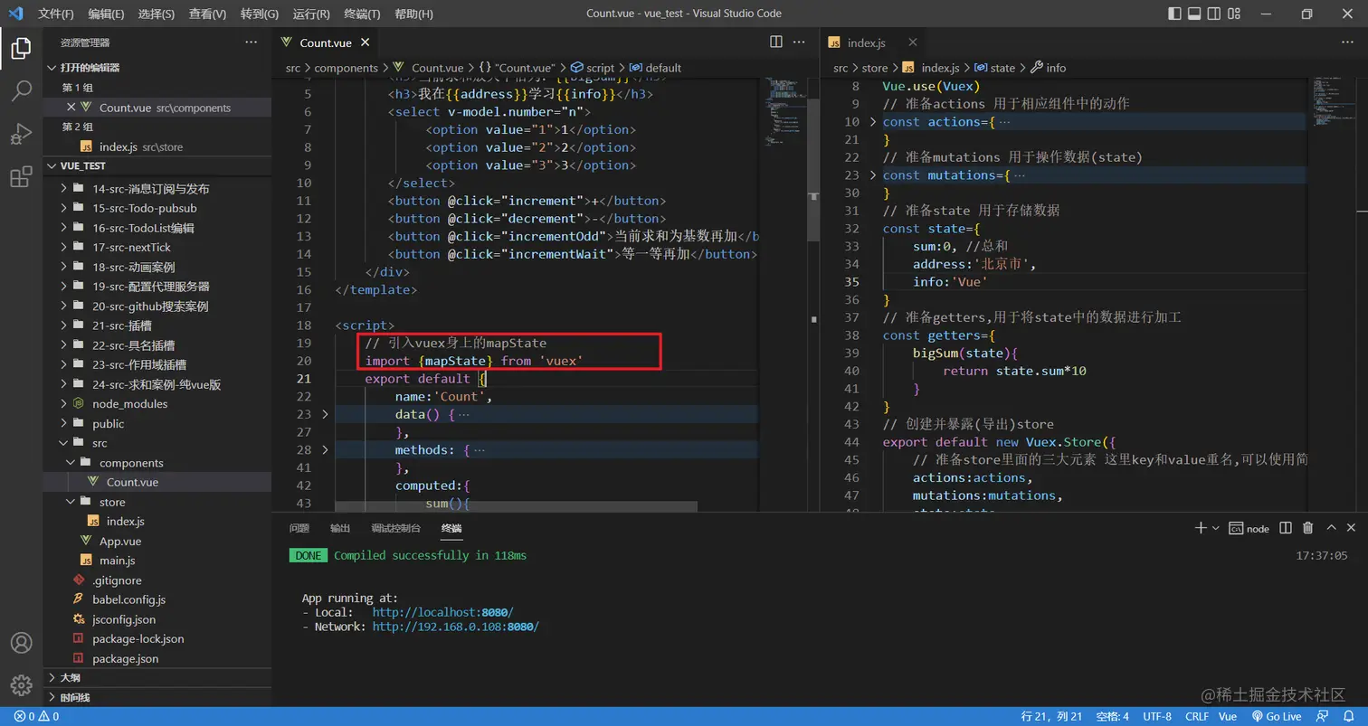 想要使用生成相关代码的函数,需要先引入vuex,从vuex身上引入mapState