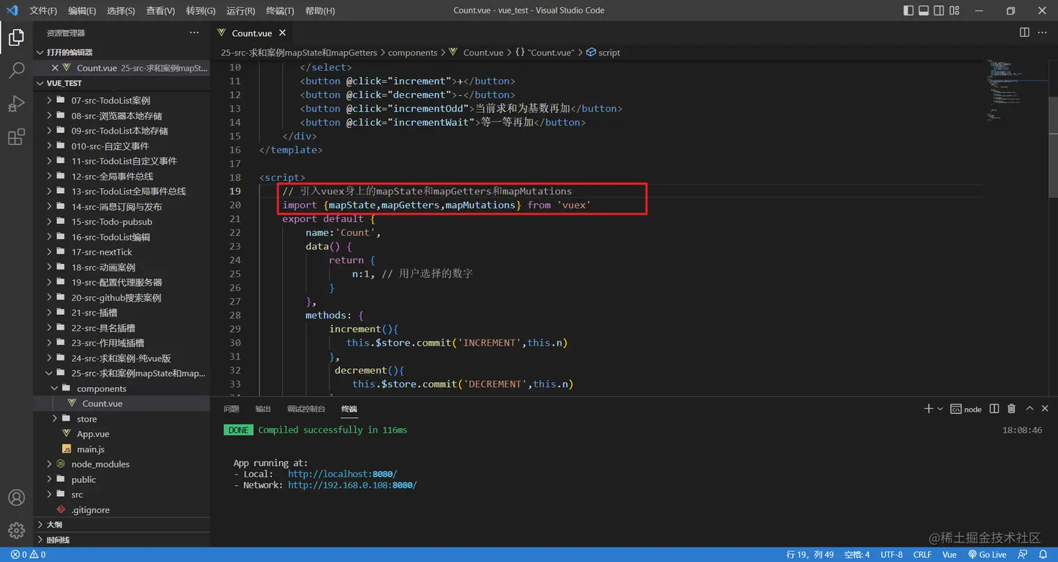 // 引入vuex身上的mapState和mapGetters和mapMutations和mapActions