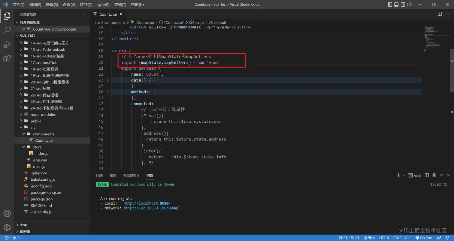 mapGetters和mapState的写法是一样的,首先需要从vuex里面引用出来