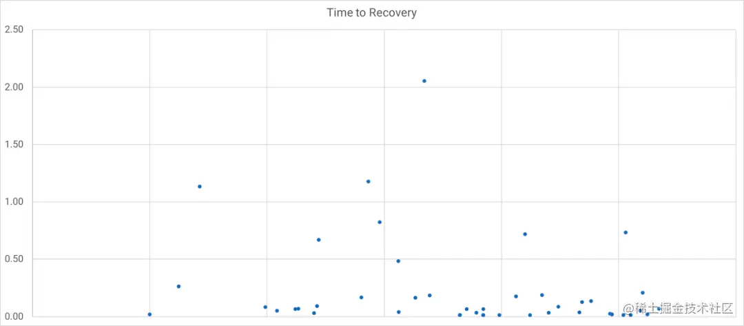 MTTR 指平均恢复时间,既是 Mean Time to Recovery,有时也是 Mean Time to Restore。它是指在发生故障后使系统恢复运行所需的时间,它是 DORA 指标的一部分,目前已经成为软件交付性能的标准。