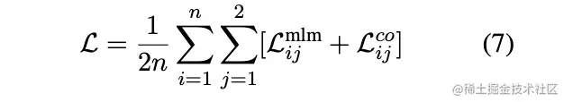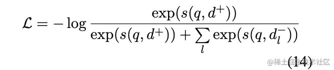 CLS虽然可以通过head进行非线性表征,但是这些向量的内积依然是不具备语义信息的。作者提出加入对比的loss来提升语义表达。这种方式在introduction部分提到了,就是抽取文档中的片段,这些片段形成了一个训练批次集,将,loss的计算公式如下图。