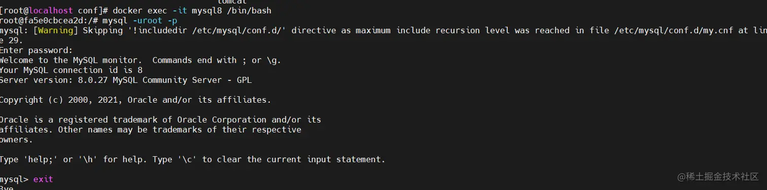 docker exec -it mysql8 bin/bash