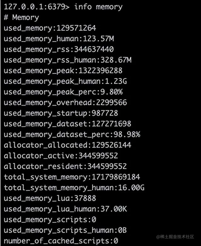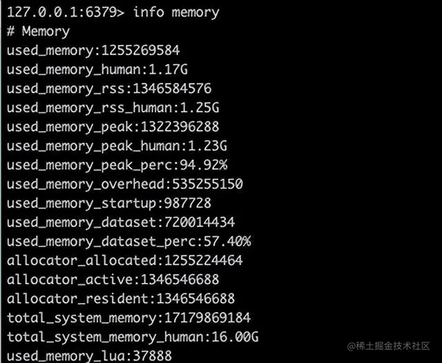 可以看到,这1千万条数据,占用了redis共计1.17G的内存。当数据量变成1个亿时,实测大约占用8个G。
