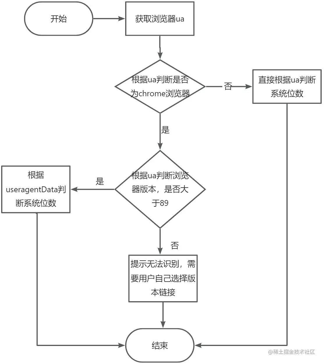 实现思路基本一致,定义枚举值,然后根据ua进行字符串匹配,参照Detect 64-bit or 32-bit Windows from User Agent or Javascript?回答的内容,简单的实现代码如下: