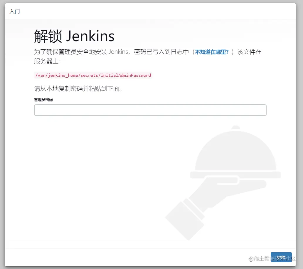 启动容器的时候对容器做了目录的映射,所以容器中的 /var/jenkins_home/secrets/initialAdminPassword的文件对应宿主机的位置是 /tmp/jenkins-data/secrets/initialAdminPassword